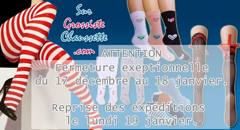 Bienvenue sur le site grossistechaussette.fr. Vous y trouverez une importante collection de chaussettes et d'accessoires lingerie de qualité à prix discount.