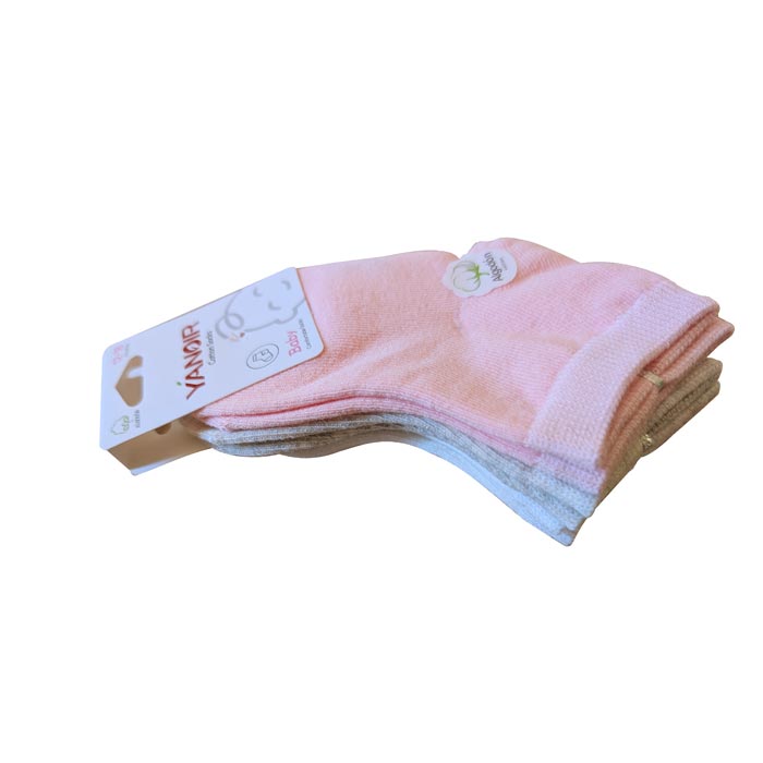 Chaussette bébé fille, coton majoritaire, panaché de couleurs dans les tons pastel 4 tailles : 0-6 mois, 6-12 mois, 12-18 mois et 18-24 mois