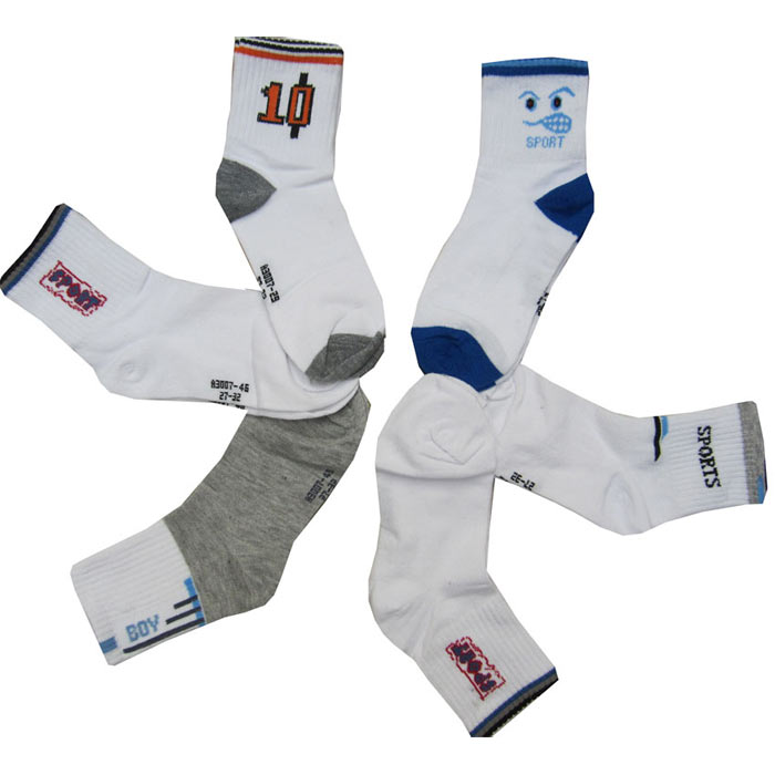 Chaussette garçon "sport" tige moyenne côtelée. Différents motifs (boy, sport ,raquette, 10, etc.) 3 tailles.